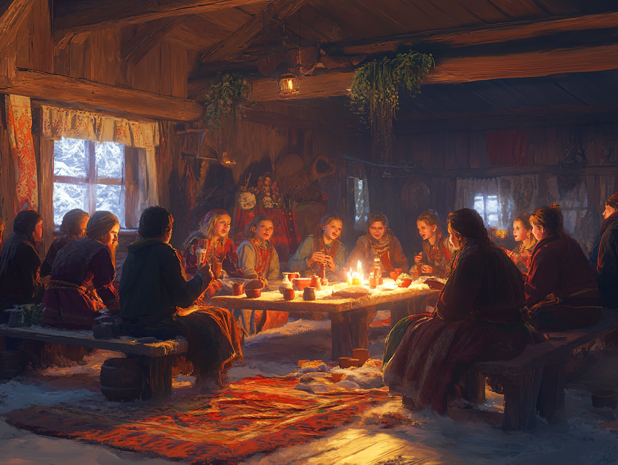 Вечёрки — это старинные молодёжные посиделки, которые устраивали зимой по вечерам в избах или на гумне. В станице Красная Поляна они проходили почти каждый вечер после окончания работ в поле. Девушки приносили с собой прялки, вышивку, клубки ниток и занимались рукоделием, а парни — рассказывали байки, играли на гармони и заигрывали. Ужинали вместе, пели песни, устраивали народные игры: «Жмурки», «Ручеёк», «Кошки-мышки», «Золотые ворота». А ещё — придумывали загадки, состязались в скороговорках и устраивали шутливые конкурсы. Это были не просто развлечения, а важная часть воспитания, общения, знакомства и сплочения молодёжи.